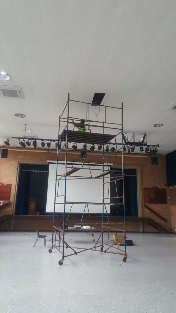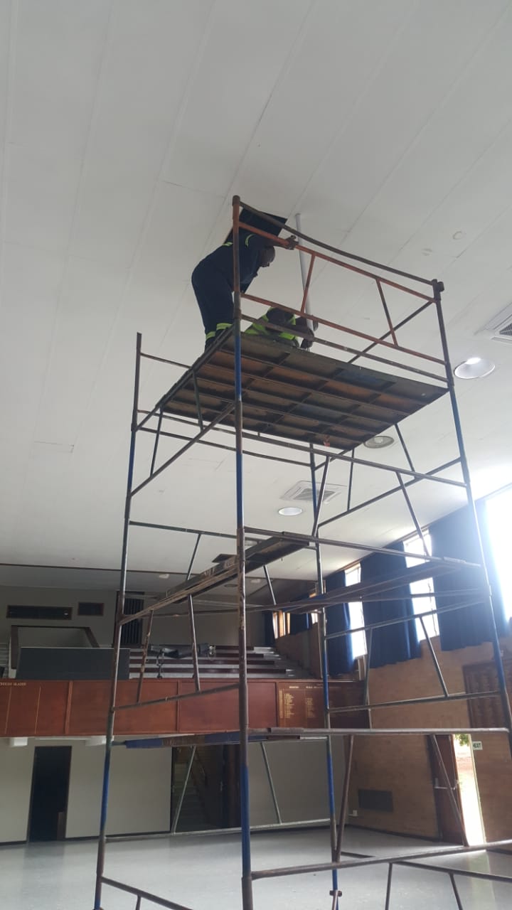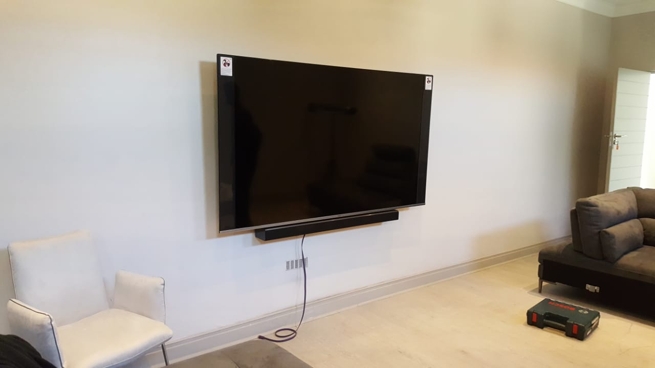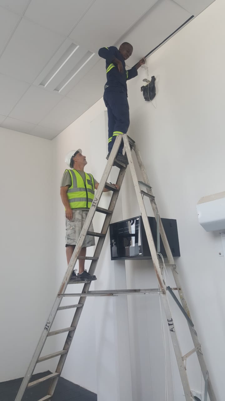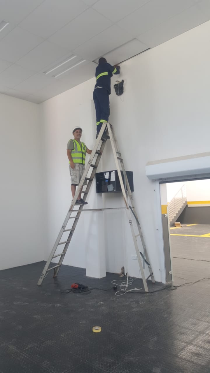 Installation at the new Fury Ford Midrand Installation at the new Fury Ford Midrand Mandla and John installing an 82″ TV Electric Screen Installation DStv Dish Installation Projector Installation Multiple LCD Screen Installations Audiovisual Equipment Hire and Set Up Home Theatre Installation